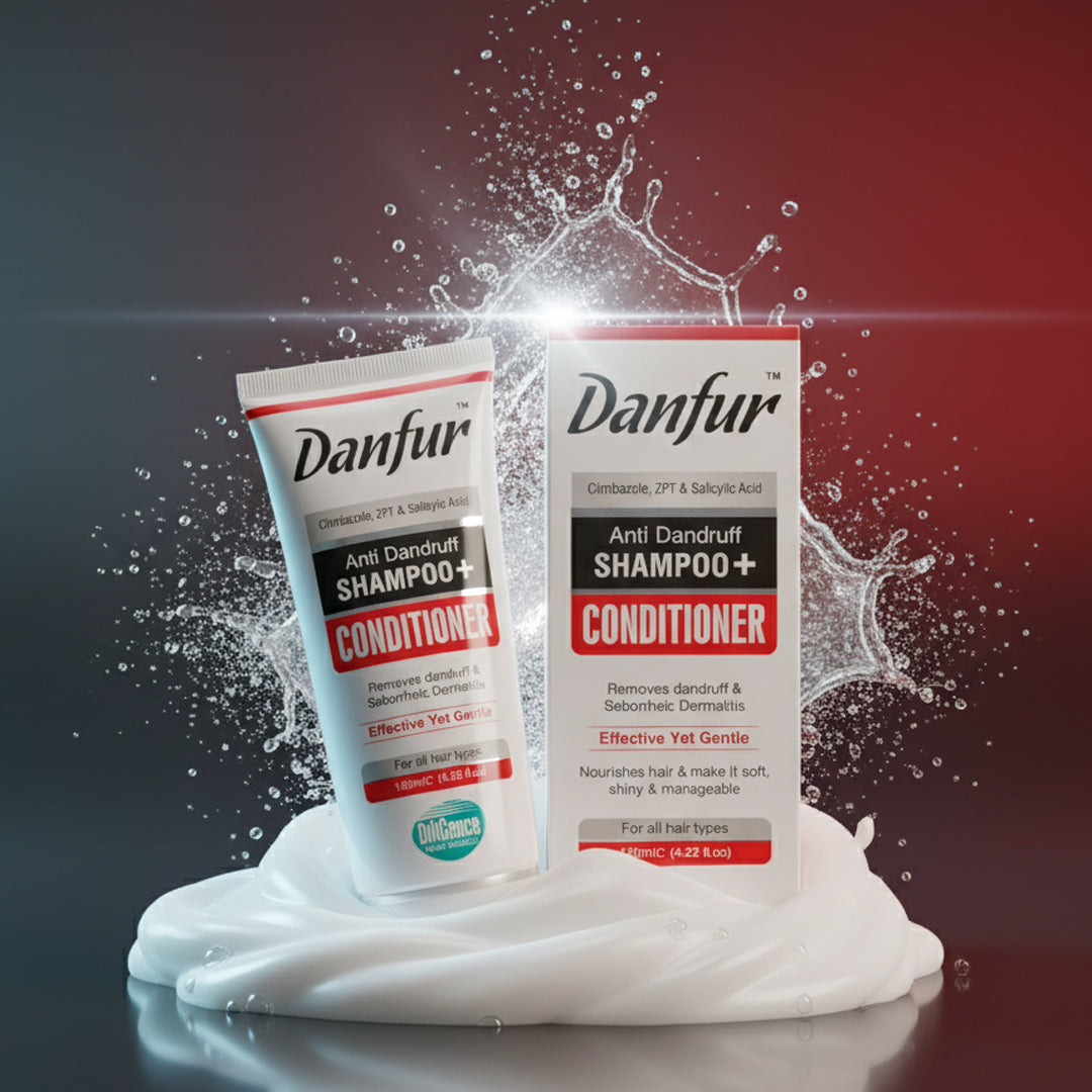 Danfur Shampoo is a dermatologist-recommended solution designed to effectively treat dandruff and seborrhoeic dermatitis. This clinically proven formula features a powerful blend of Climbazole, Zinc Pyrithione, and Salicylic Acid, which work together to combat fungal overgrowth, reduce flaking, and soothe irritated scalps. Enhanced with a Polyquaternium Conditioner, Danfur Shampoo not only treats scalp issues but also nourishes and protects your hair, leaving it soft, manageable, and healthy-looking. It’s suitable for regular use and ideal for individuals experiencing chronic scalp conditions.